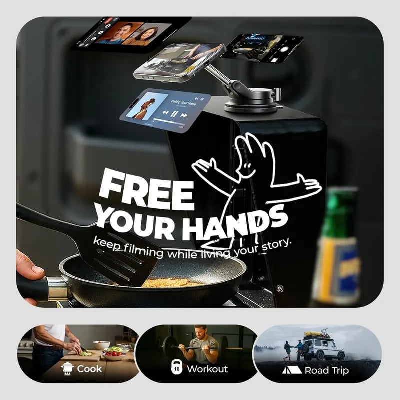 The head rotates 180° with micro-tilt to cut glare and switch instantly between portrait and landscape. This versatile magnetic phone mount offers exceptional flexibility, making the magnetic phone holder for car suitable for various scenarios. Great for Windshield/Screen/Glass/Mirror/Kitchen/Bathroom/Gym/Treadmill with your Magsafe Car Mount, this reliable magnetic phone holder ensures optimal viewing angles in any situation. Ideal gifts for tech lovers.