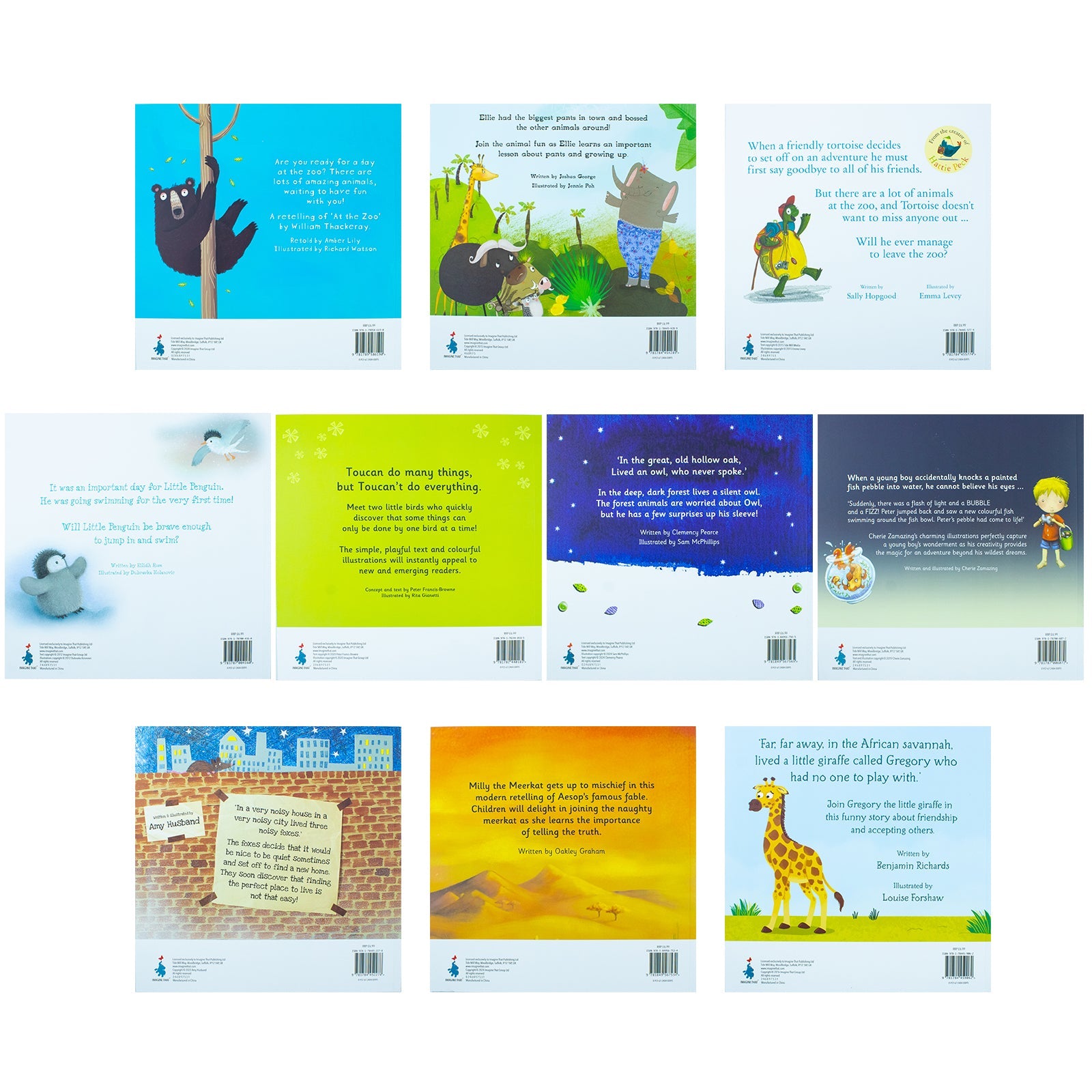 A Day at the Zoo 10 Animal Stories Illustrated Picture Flats Book Collection Set (Animal Magic, Little Giraffe Big Idea, Little Penguin, See You Later Alligator,The Silent Owl, Milly the Meerkat)