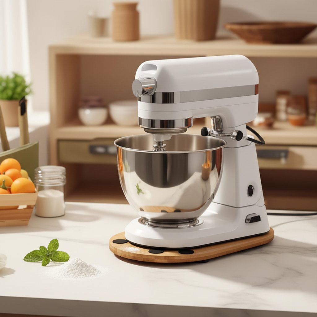 Works for stand mixers, blenders, food processors. No need to measure sizes. Small edges stop the mixer from sliding off—super flexible.